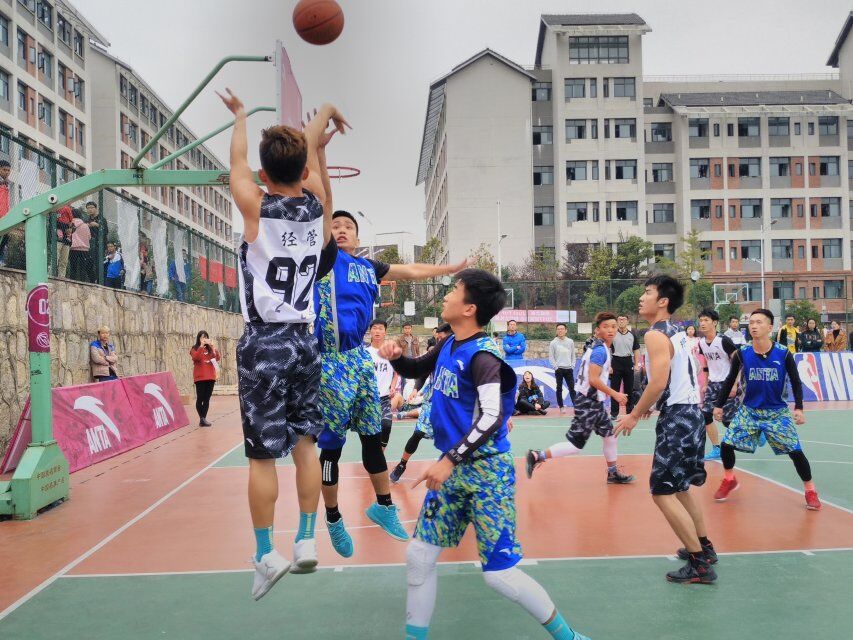 2017年11月17日下午3点,betway必威中国“安踏杯”篮球赛经过激烈的角逐进入决赛阶段,决赛在betway必威中国花溪校区二号篮球场进行。本次“安踏杯”篮球赛共有17支球队参赛,betway必威中国、材料与建筑工程公司的球队进入决赛。