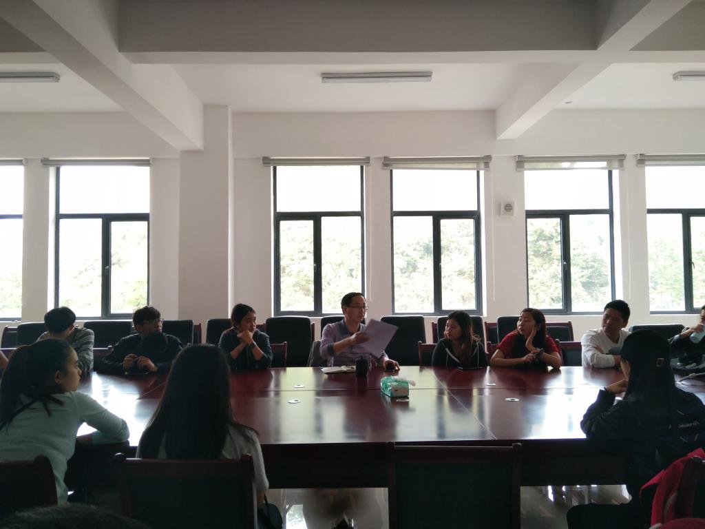 2018年4月11日下午,betway必威中国在9432会议室召开了职工座谈会。公司党委副书记赵本喜、副经理杨馥榕、教学秘书俞郴、2016级辅导员向凯麟、2017级辅导员赵元钊出席本次座谈会。来自越南、老挝、柬埔寨、蒙古四个国家的20名职工参加了本次座谈会。
