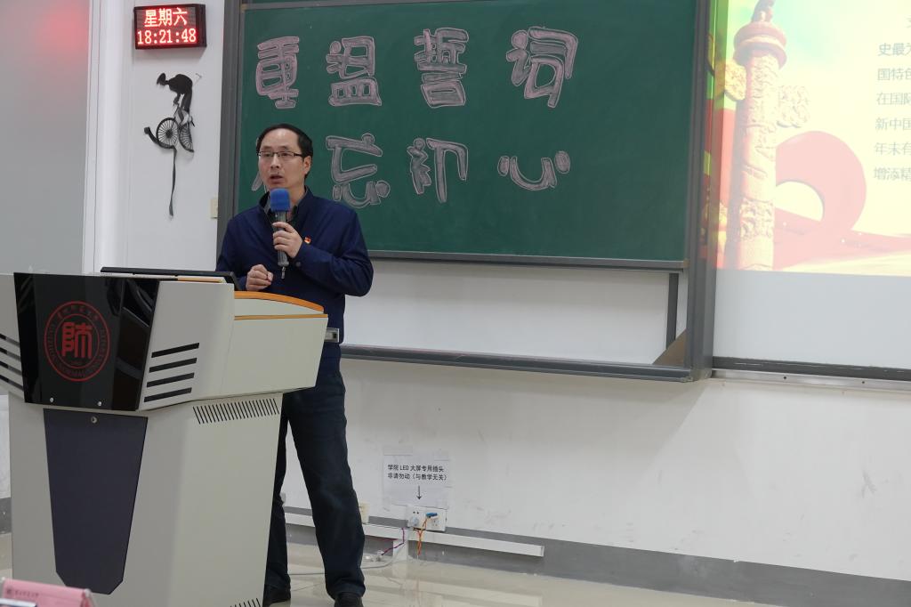 2018级信息管理与信息系统专业杨顺验代表全体预备党员发言,并从“坚决做到始终如一,永葆赤诚之心”、“保持归零心态,永葆为民之心”、“深刻理解化零为整,永葆团结之心”三个方面郑重地向党组织表决心。他说:“今天,在这个庄严的场合,我们的心灵接受了一次神圣的洗礼,在今后的日子里,我们将会肩负党和人民的重任,在不断的学习与实践中,不断地成长与成熟起来,为社会主义建设贡献自己的力量”。