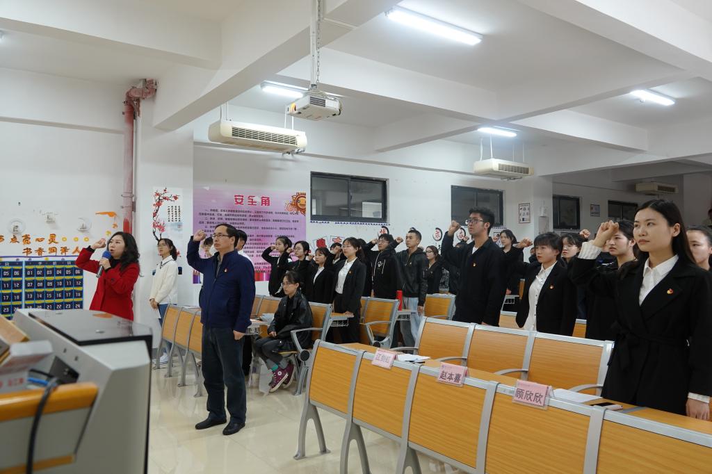 随后,举行入党宣誓仪式,由江剑虹领誓、赵本喜监誓。在领誓人的带领下,大家紧握右拳,庄严宣誓,表达对党忠诚、永不叛党和愿意为共产主义事业奋斗终身的决心。