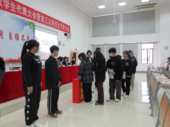 第三届员工会主席团成员彭慧娟代表第三届员工会作《慎思笃行、博学致新,开创员工会服务员工新局面,经世致用、自强不息,搭建员工成长成才和谐舞台》的工作报告。第二届研究生会主席团成员薛著文代表第二届研究生会作《奋楫笃行、臻于至善、自信自强、守正创新,无私奉献、迎难而上,推进研究生会更好、更快高质量发展》的工作报告。