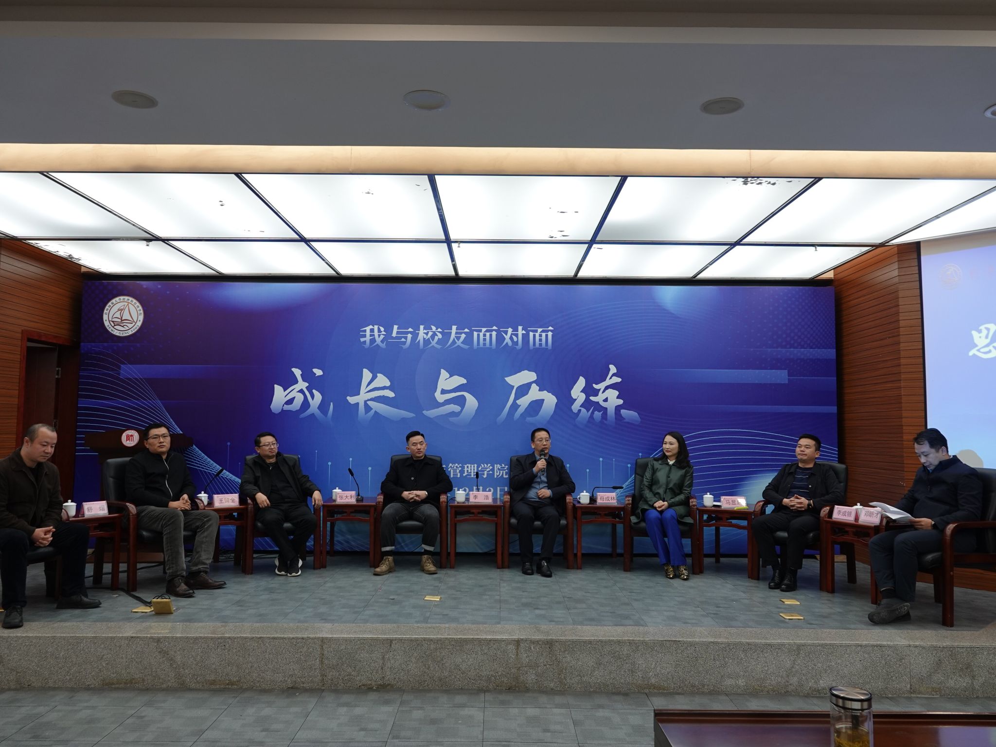 座谈会上,李成银以“成为自己”为主题分享学习和工作的方法,告诫同学们珍惜在校学习时光,抱朴守拙,谦虚谨慎,善用点子库等方法提升自己的专业知识。马显翠通过分享工作经历,倡导同学们要从与人交往中学习,增强沟通和交流的能力,开阔眼界,不断向上生长,最终实现人生理想。王留全通过分享创业历程,告诉同学们要具备一定的学习能力,为个人长远发展打下基础。母成林强调执行力和专注力的重要性,提醒同学们提前做好职业规划,在面对自己未曾涉及的专业或领域时要保持良好的心态去学习和努力。张大利通过分享自己的成长经历,鼓励同学们要勇于尝试,往自己擅长的方面发展,坚持不懈努力。建议同学在选择是否创业时,要评估自己的各方面能力,并根据具体情况进行选择后再做出决定。李浩鼓励同学们要提前做好职业规划,瞄准目标,勇于尝试,加强对创新创业的认识,提高自身的创新创业能力。学以致用,在实习实践中不断磨练自己,提高抗压能力。舒熠建议同学们在大学期间积极参与实习活动,从而了解职场需求和积累相关经验。并强调要根据自己的具体情况进行择业、就业、创业,以稳扎稳打为关键。随后的互动环节中,同学们在学业发展和生涯规划等方面踊跃提问,员工们在解答同学们困惑的同时,激励大家明确职业目标,努力拼搏、不懈奋斗。