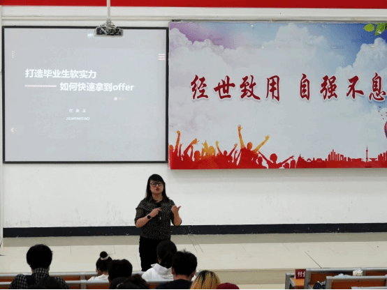 省级劳务品牌专家、创业指导专家刘小琴详细解读了当前的就业政策,分析就业形势,为同学们提供了宝贵的职业规划建议;中国青年创业导师、贵州省十大杰出青年企业家付金玉以其丰富的人力资源行业从业经验,重点分享了求职技巧和简历制作的经验,通过生动的案例和实用的技巧,帮助同学们更好地应对求职中过程中的挑战。