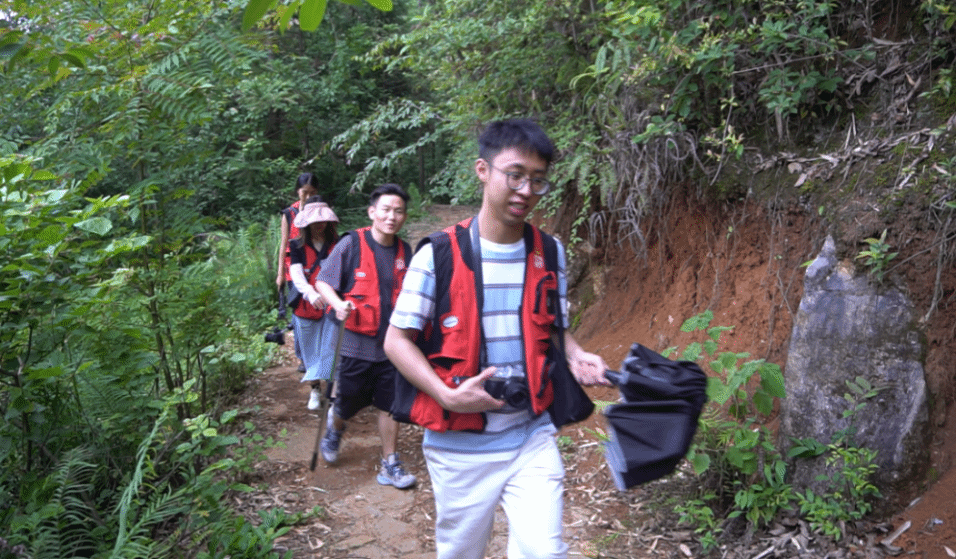 景区的山林中,山路曲折泥泞,尽管如此,团队成员毫无退缩之意,始终保持一腔热情,在艰苦环境中磨练坚韧意志。