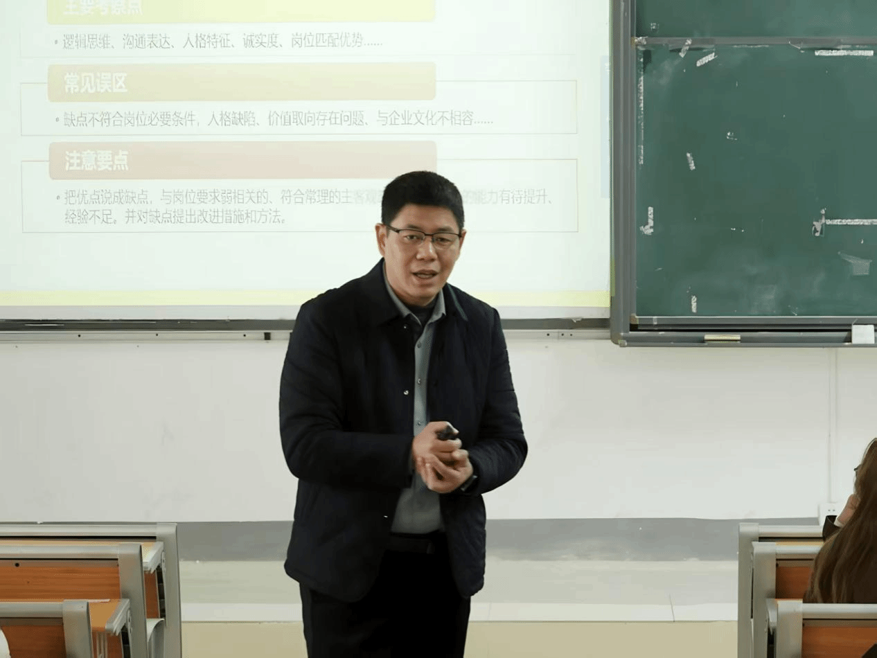 讲座中,路益老师着重强调了职业指导在老员工职业生涯规划中的核心地位,并以《通关面试技巧》为主题展开就业指导分享,激励同学们积极提升求职技能。