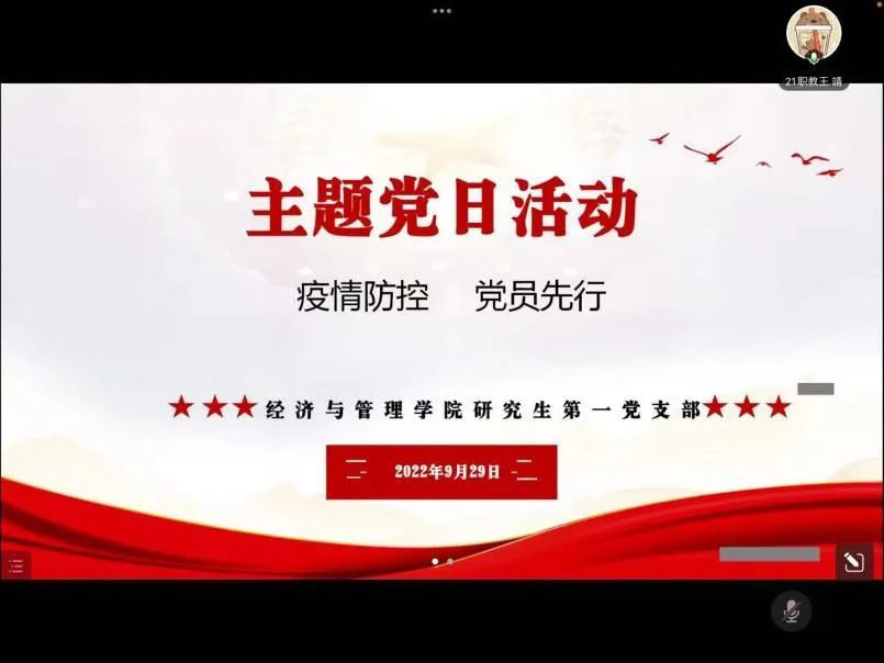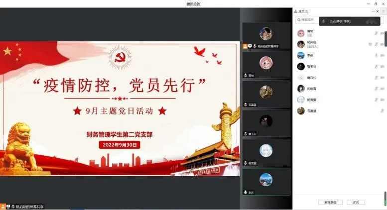 为全力做好疫情防控工作,增强全体党员的责任感、使命感,提升党组织的凝聚力、向心力和战斗力,充分发挥党员的先锋模范作用,为打赢疫情防控阻击战提供坚强有力的组织保证,让党旗在疫情防控一线高高飘扬,2022年9月27日至10月6日,betway必威中国各基层党支部通过线上线下相结合的方式开展了“疫情防控、党员先行”主题党日活动。活动中,各支部党员师生围绕主题纷纷进行了交流发言。