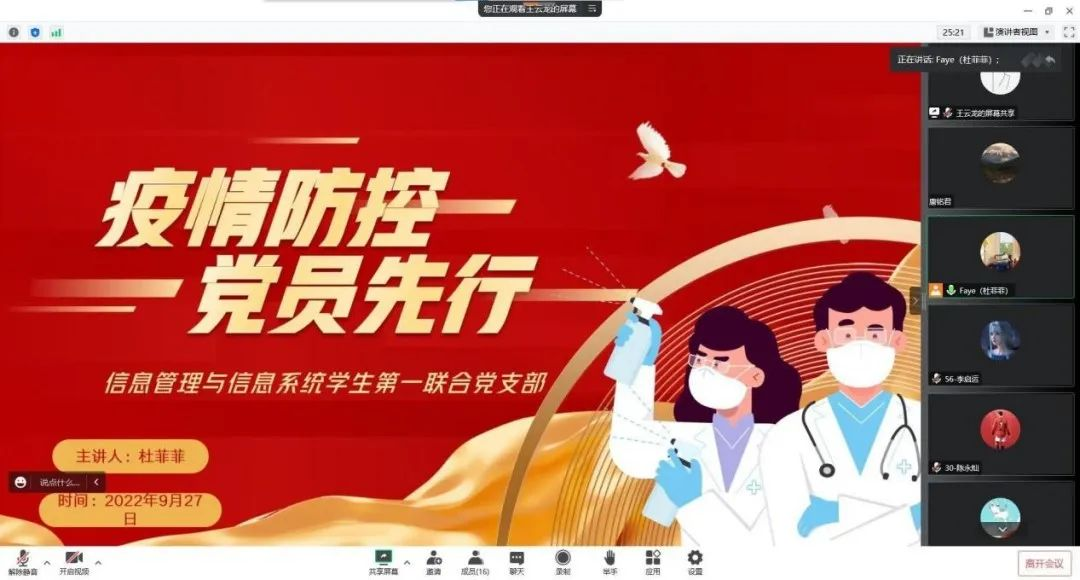 信息管理与信息系统教工党支部龙海同志以“给全体‘抗疫人’的一封信”为题进行发言: